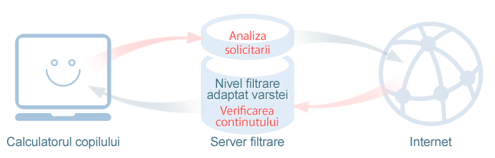 Navitron analizeaza orice solicitare a copilului catre Internet si apoi filtreaza pagina sosita de pe Internet. Este un filtru multilingv; citeste si filtreaza continutul fiecarei pagini de Internet in parte, inainte ca aceasta sa ajunga pe monitorul copilului. Sistemul Navitron este diferit de oricare alta solutie de protectie sau control parental, deoarece functioneaza pe Internet, nicidecum in calculatorul copilului.